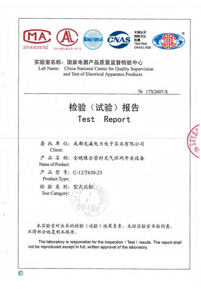 全绝缘全密封充气环网开关设备C-12-T630-20(燃弧)
