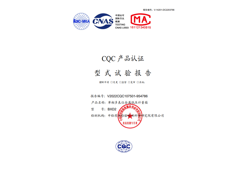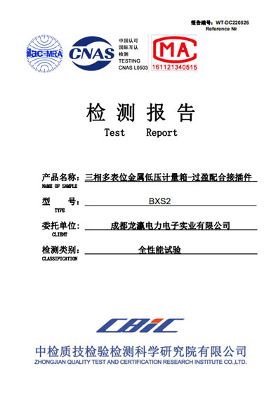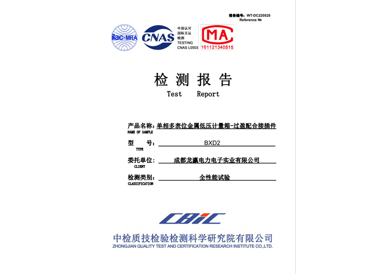 BXD2(250A~6A)单相多表位金属低压计量箱(过盈配合接插件检测报告)