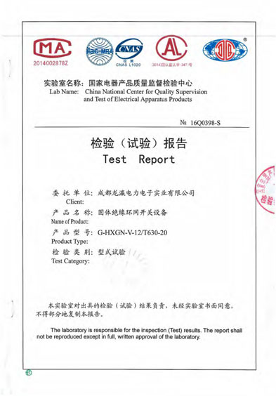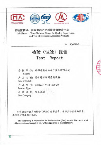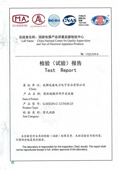 固体绝缘环网开关设备G-HXGN-V-12-T630-20(燃弧)