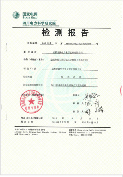 金属单相6表位低压计量学(普通开关)四川电力科学研究院检测报告