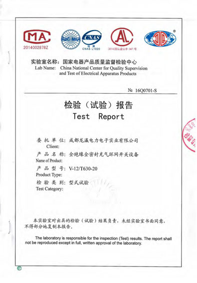 全绝缘全密封充气环网开关设备V-12-T630-20(燃弧)